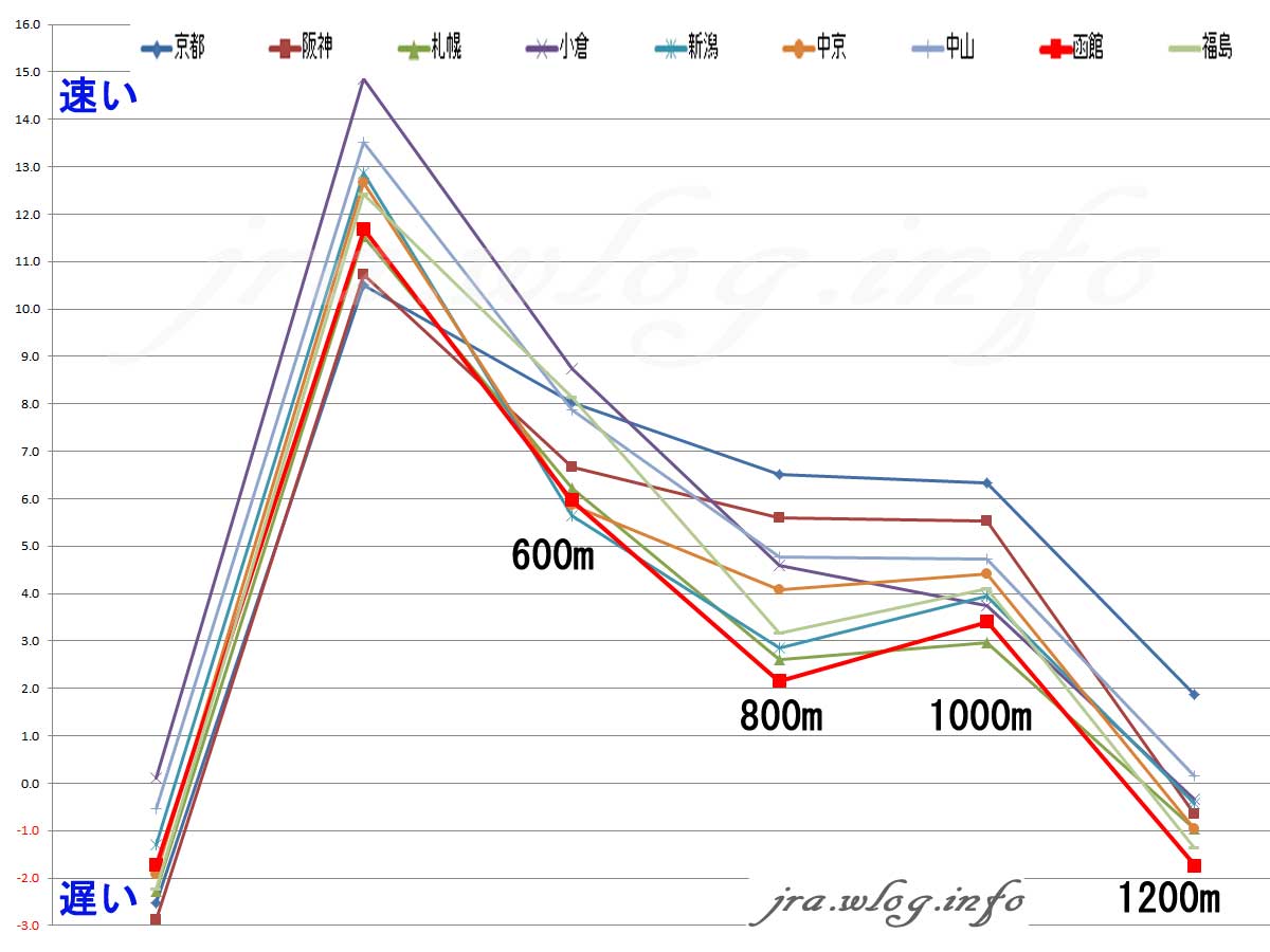 ■福島競馬は函館、札幌、新潟競馬より上りタイムが速くなる傾向。 ■中山、中京、京都、阪神、小倉競馬より上りタイムが遅くなる傾向。
